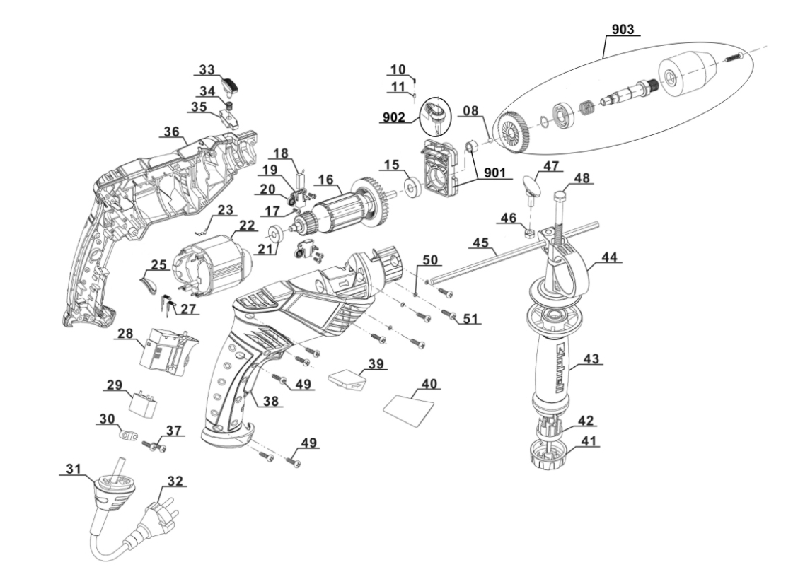 | Drill chuck | 1.5 mm - 13 mm |