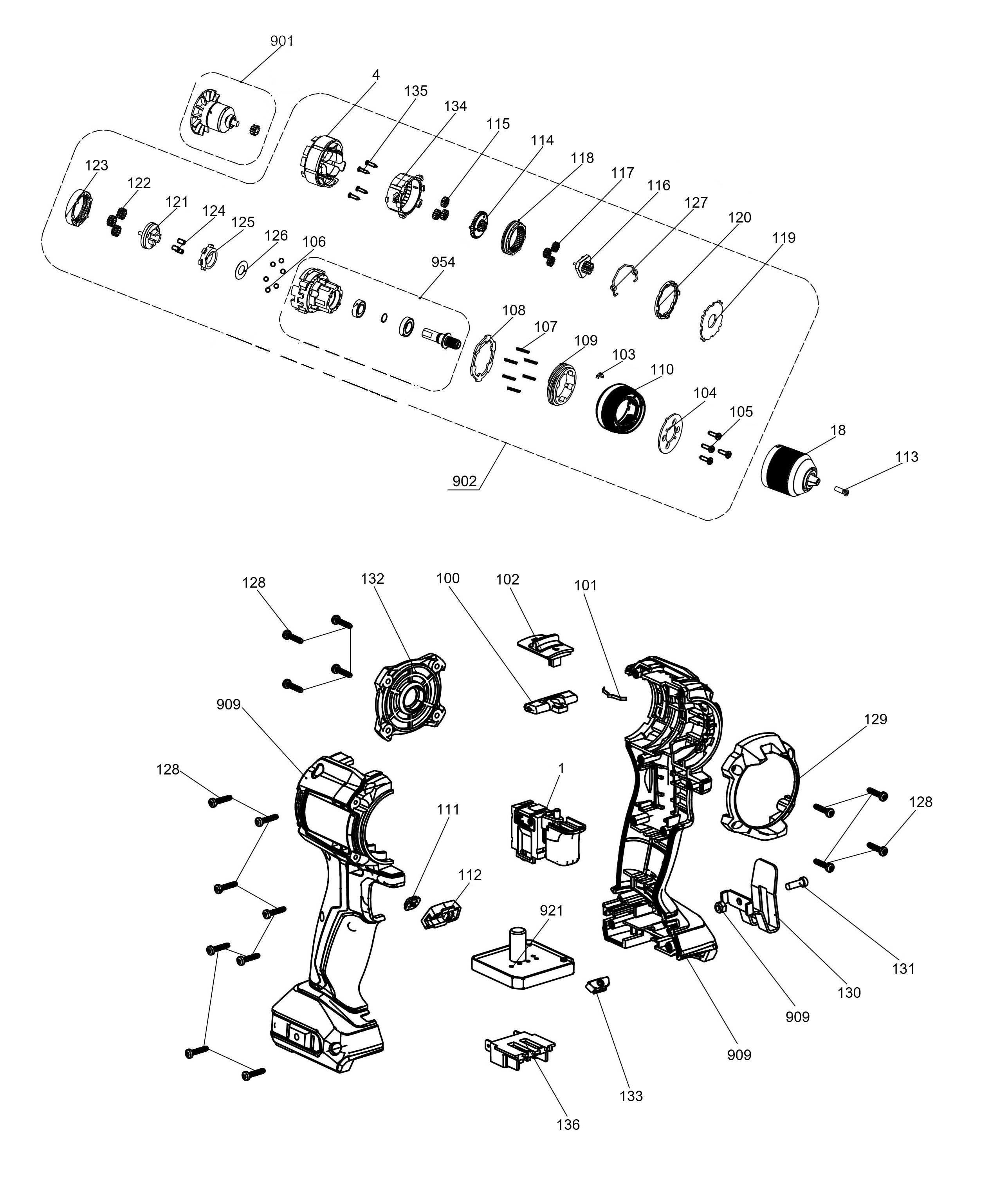 Spareparts for TP-CD 18/50-C Li BL - Solo displayed via list view or via explosion drawing
