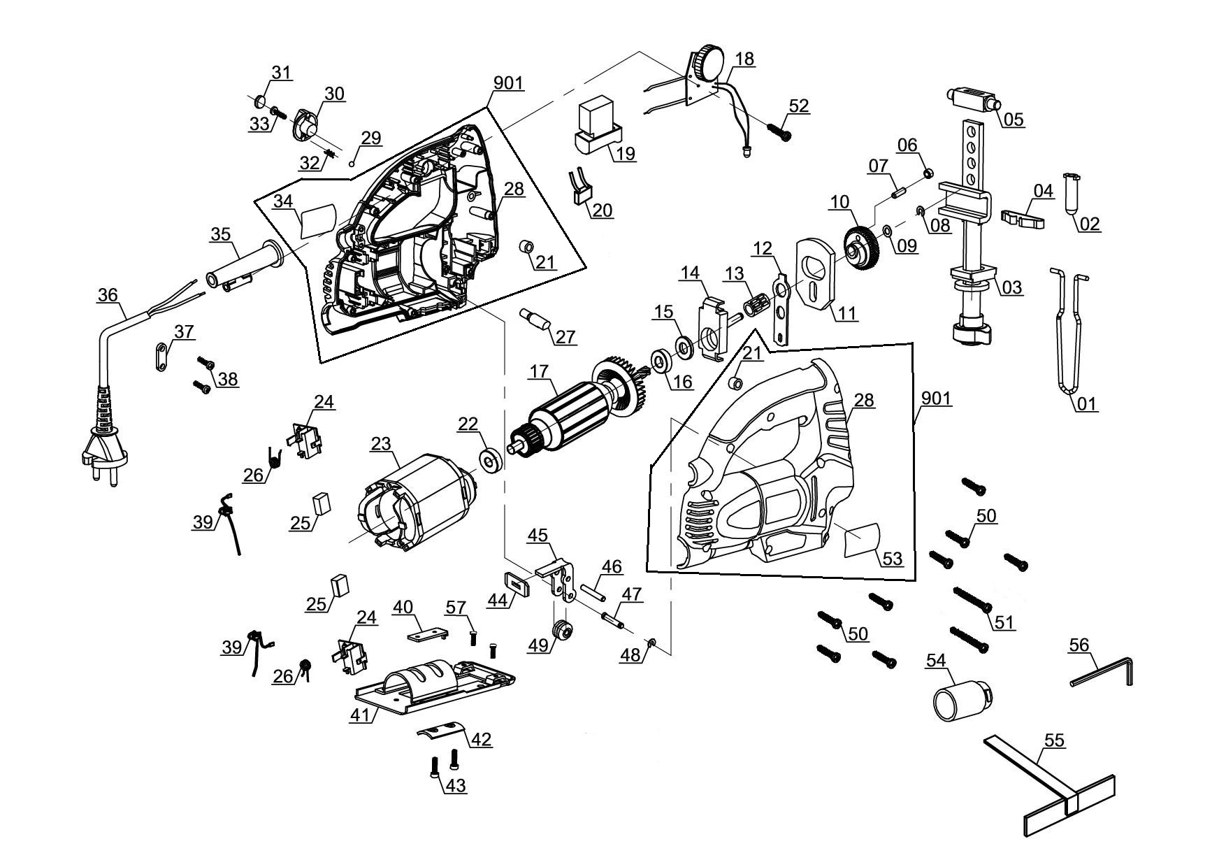 Spareparts for JSW-6800 displayed via list view or via explosion drawing