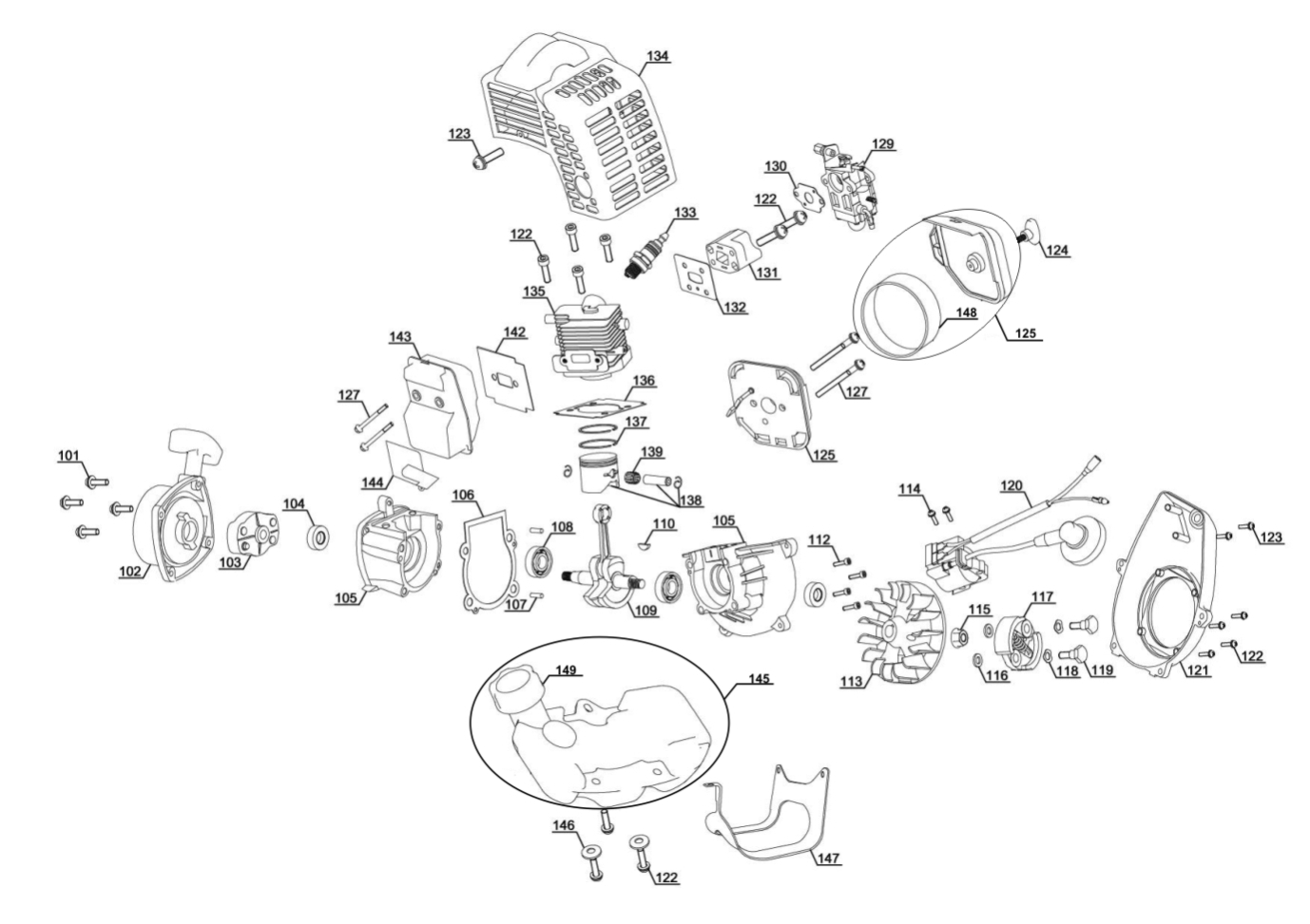 Spareparts for BBC 25/1 Non-EU Engine Unit displayed via list view or via explosion drawing