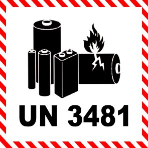 - Se enviar um dispositivo com uma bateria (instalada no dispositivo ou incluída), use a imagem com o rótulo de iões de lítio 3481.