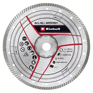 Numere, date și fapte pentru Accesorii masina de debitat piatra Diamond Cutting Disc, Turbo Rim, Ø 250 x 25.4 x 2.8 mm: Aici găsești date tehnice detaliate, precum și date exacte privind dimensiunea, greutatea și ambalajul acestui produs Einhell.